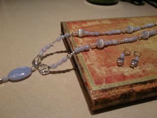 Blue Chalcedony Pendant with Matching Celtic Design Earrings